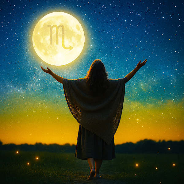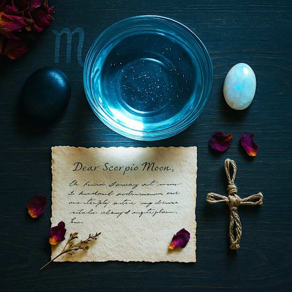 This sacred act of surrender and renewal connects you to the deeper emotional tides of the Full Moon in Scorpio. Let it wash over you with healing grace.