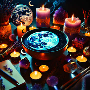 ✔ Gratitude & Release – Thank the Moon, blow out the candle, and pour the water into the earth or a body of water as an offering.